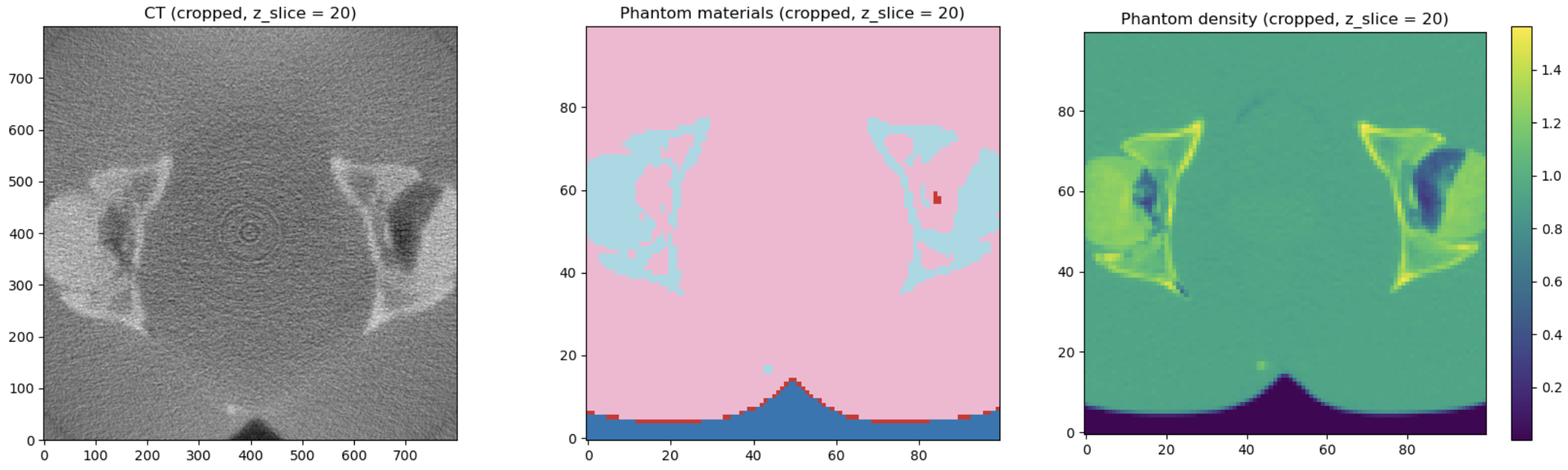 - Registration: Rigid/affine (for now) steps to line up the CT volume with the MC phantom grid; handling voxel spacing and orientation.
